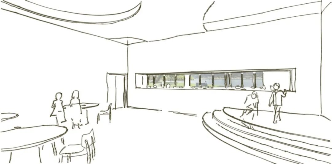 如何在目前富有张力的建筑外观中嵌入开放的亲民的环境空间,使彼此相融成为一个有机结合的和谐整体是此次室内设计的一大课题。