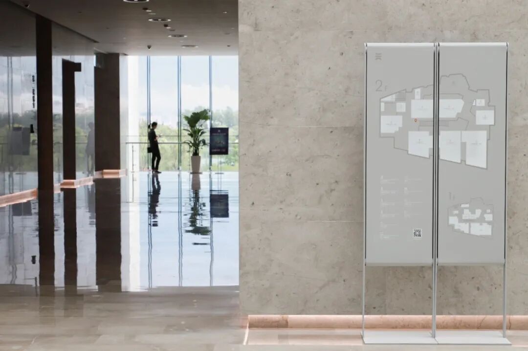 1、不损伤建筑的存在感,建筑是有力量的、硬质的男性的风格,我们做到一种轻软的柔美的女性的风格的导视。