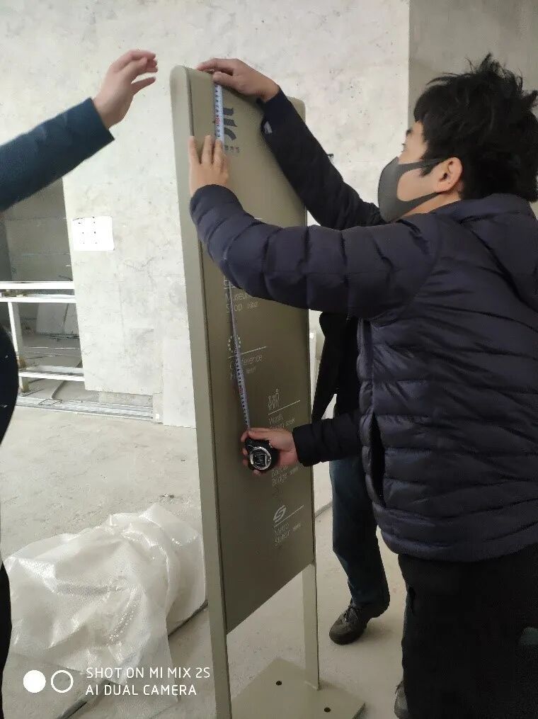 3、与周围景观相协调,找到与景观协调一致,多变的导视方程式。导视设计的灵感源于吴中非遗丝绸有关的衣架,用统一的颜色与“60*40“的基本尺度进行延展。