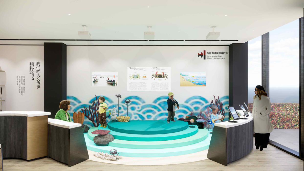 一个展厅有故事情节的叙事,可以让参观者早早入戏,也不容易出戏,比起一堆PPT堆砌表达(模式表达)更容易扣人心弦,久久回味。因此我们深挖阳澄湖镇的DNA—变与不变的和谐统一,将展厅赋予了更深一层的内涵。从阳澄湖的自带基因—阳澄湖荣誉---阳澄湖的未来展望,带领观众再发现阳澄湖的真正魅力,并且全程贯彻传统与现代和谐统一的中心思想。